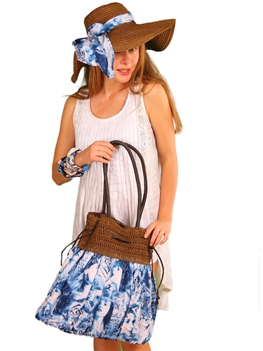 Состав: шляпа-20% хлопок 60% бумага 20% п/эстер,сумка-100% вискоза