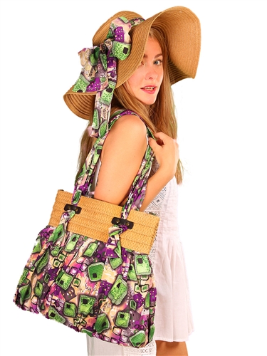 Состав: шляпа-20% хлопок 60% бумага 20% п/эстер,сумка-100% вискоза