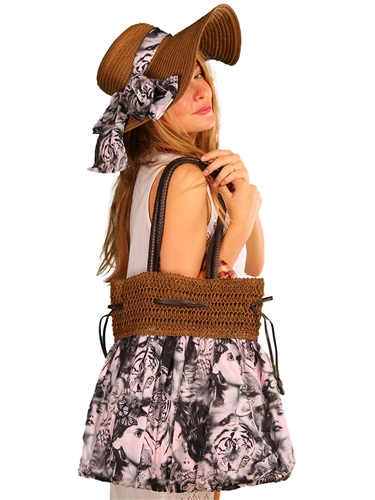 Состав: шляпа-20% хлопок 60% бумага 20% п/эстер,сумка-100% вискоза