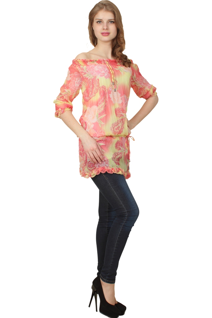 Туника в "народном" стиле из слегка гофрированного шифона.