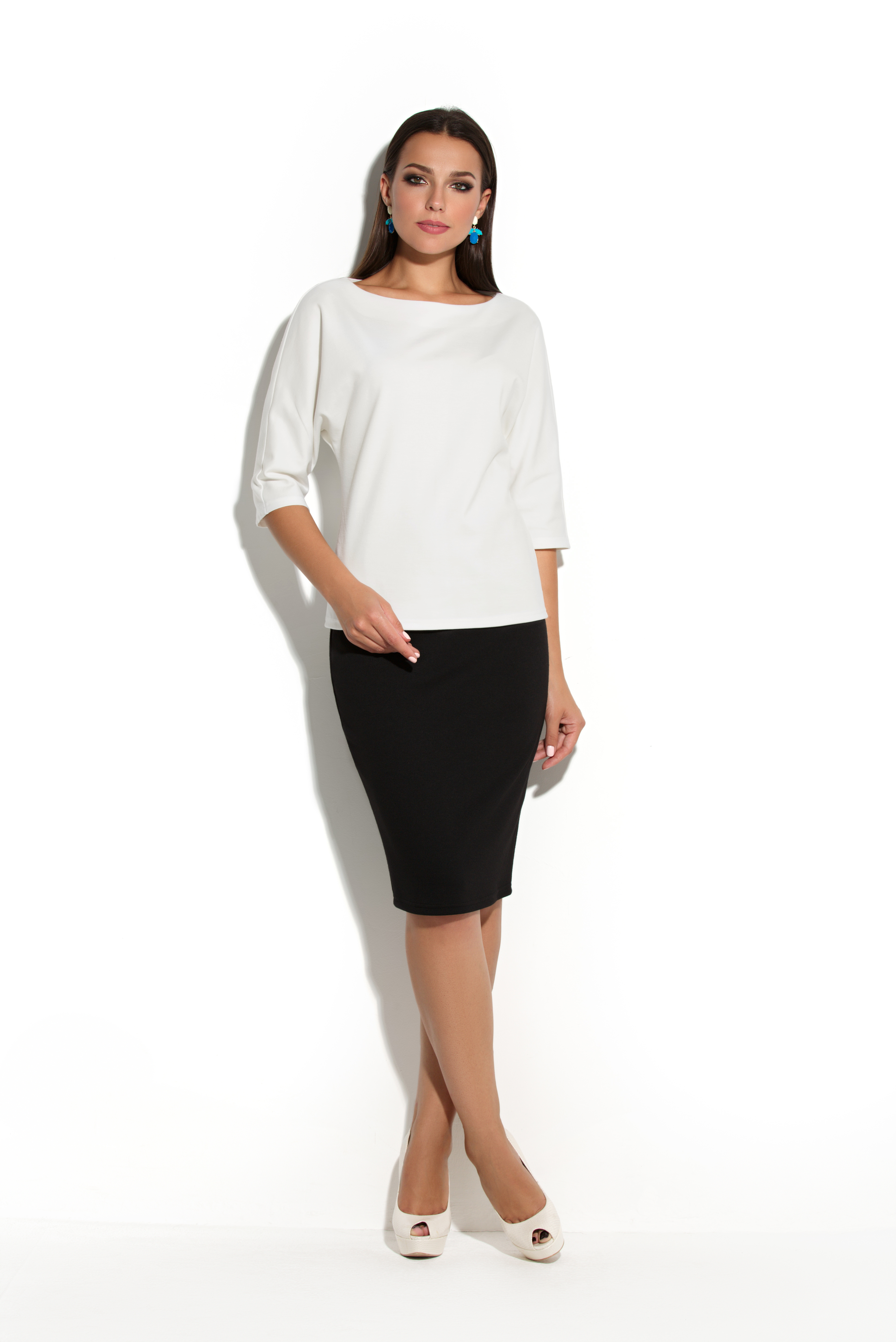Блузка с цельнокроеным рукавом из плотного трикотажа . Вырез горловины - . Рукав широкий до линии локтя. Спинка со средним швом. Силуэт блузки позволяет носить данную модель девушкам разного телосложения.