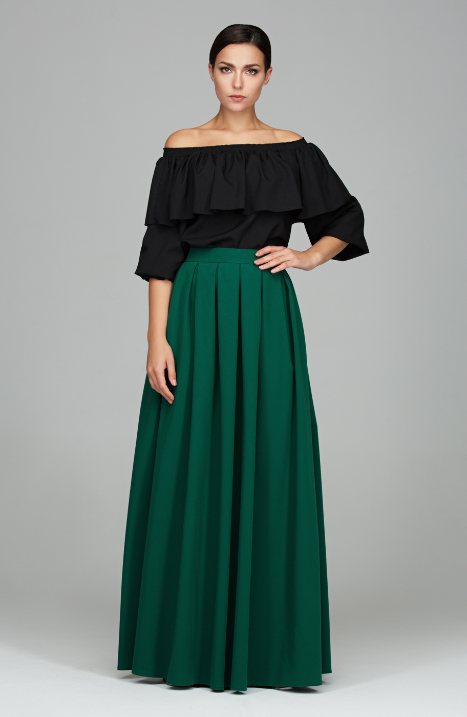 Юбка <<макси>> из ткани <<гальяно>>. Юбка на поясе с застежкой на спинке на потайную молнию. Юбка в глубокую частую складку, что придает модели элегантности и романтичность.