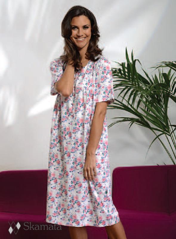 Ночная рубашка с удлиненным рукавом. Пуговицы до середины изделия, вырез на воротнике круглый.
