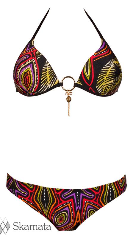 Купальник бикини изготовлен из испанского материала с использование высококачественной фурнитуры. В купальнике используется Чашка push-up, производство Германия, компания Muehlmeier (Компания Muehlmeier является одним из мировых лидеров в области моделирования и производства чашек). Скульптурный корректор идеально поддерживает грудь и сдвигает ее к центру, зрительно увеличивая ее объем. Компания Muehlmeier довела треугольные чашки до совершенства! В отличие от обычных треугольных чашек, оптимизированные треугольные чашки от Muehlmeier оснащены дополнительными удлинителями лямок и предусмотрены для нижнего белья и купальников. Эти особенности гарантируют идеальное прилегание и удобное ношение, так как чашка тесно прилегает к телу и не смещается. Бретели бюстгальтера завязываются.