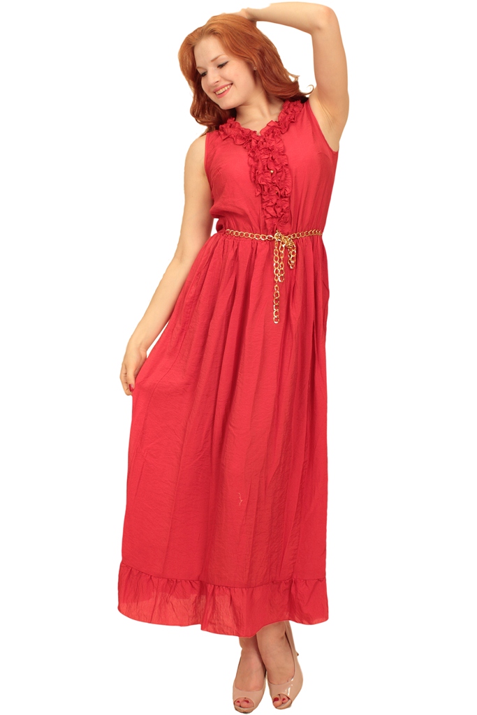 В боковые швы вшит пояс-цепочка, который можно завязывать, как спереди, так и сзади.