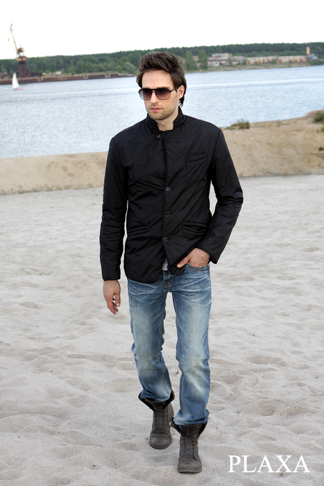 Куртка демисезонная пиджачного типа, силуэт "slimfit", центральная застёжка на три прорезные петли и пуговицы, пата с кнопкой в углу левого лацкана, нижние карманы прорезные наклонные «в рамку», один верхний прорезной карман слева, внутренние карманы, утеплитель синтепон 60 г/м2