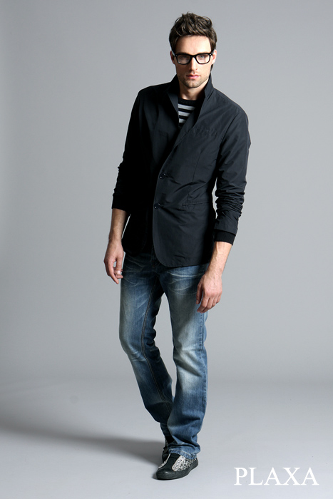Пиджак полуприлегающего силуэта, застёжка центральная на две прорезные петли и пуговицы, воротник пиджачного типа с отрезной стойкой, нижние карманы прорезные горизонтальные «в рамку» с клапанами, подкладка короткая, с двумя внутренними карманами на молнии, рукава без подкладки, без утеплителя