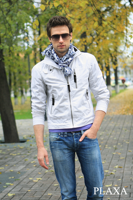 Силуэт "slimfit", короткая, центральная застёжка на молнию с кантом, доходящая до края воротника, с нижней планкой, воротник – трикотажная стойка, широкий пояс изделия - из основного материала, нижние карманы и верхний левый карман прорезные с молнией, верхний правый карман прорезной с клапаном, клапан на кнопке, рукава с манжетами, подкладки горизонтальные прорезные карманы, без утеплителя